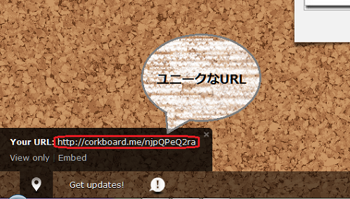そして、コルクボードは新規でユニークなURLを与えられるので、そのURLを他の人に教えればそのコルクボードを共有できるというのがもっとも重要なポイントですな。