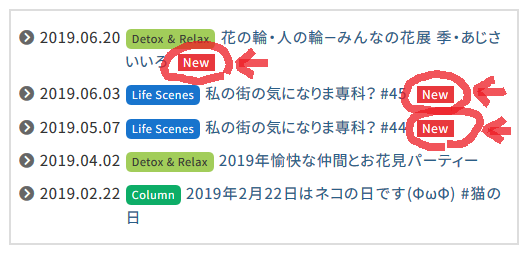 - 何日以内の記事(タイトル)に対して「新着」を示すテキストをつける