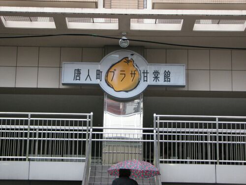 この「唐人町プラザ甘棠館」は、市の市街地開発事業(優良建築物等整備事業)によって平成13年4月に正式オープンした施設で、商店街のコミュニティセンター、文化施設、マンション、スーパーマーケットの「トーホー」などを備えている。