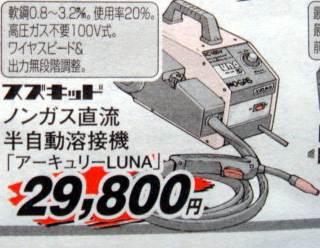 「スズキッド ノンガス直流半自動溶接機 アーキュリーLUNA」29800円。