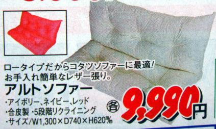 アルトソファー「ロータイプだからコタツソファーに最適!お手入れ簡単なレザー張り」という言葉が入っている。