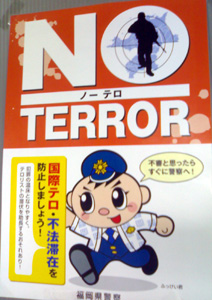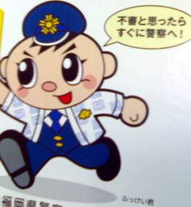 国際テロ、不法滞在を取り締まる福岡県警公認キャラクターふっけい君。
