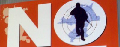 右の、NOのOの字のなかにいる「テロ」な人物のタッチと、