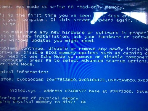 どうも悪さをしているのは「RT2500.sys」というドライバーっぽい。