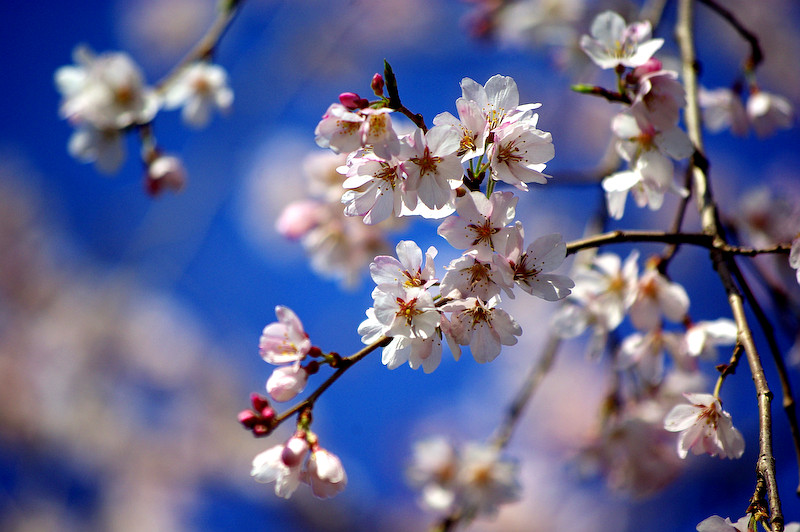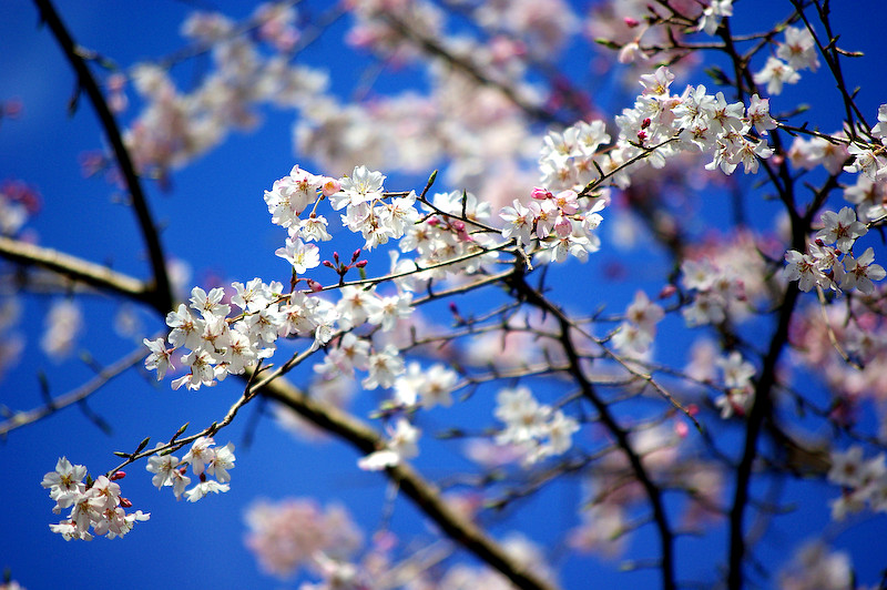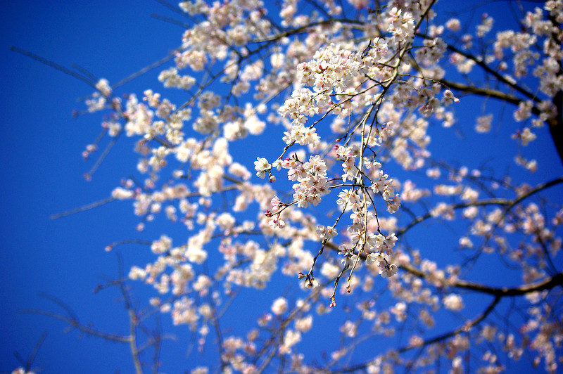 そして、晴天の下、桜の淡い花びらの色が美しい。