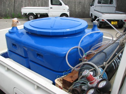 ここまで成長させるには、餌やりはもちろんのこと、水槽の水を入れ替え新鮮に保つことも重要で、放流のこの日は水槽からいったん輸送用のタンクに積み替えて車で移動するために、タンクの水温にも気を使われてました(水温が高すぎるとヒラメは死んでしまうので)。