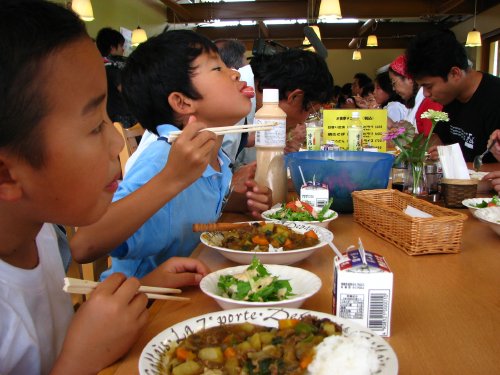 ドタバタの料理体験(笑)でしたが、無事に夏野菜カレーと京水菜のサラダが完成。