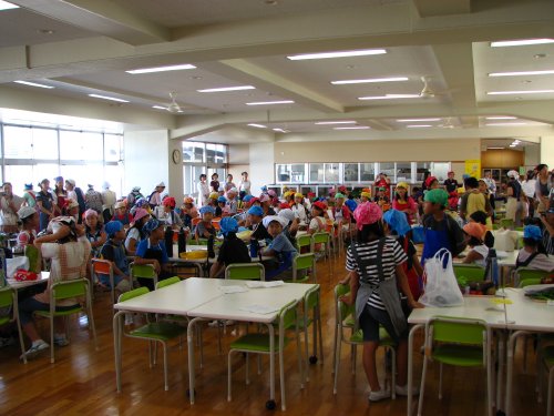 小学5年生3クラス約100名+その保護者の方たちを中心に、JA女性部や青少協の皆さんなどなどの協力を得て、総勢200名ほどで盛大に行われました。