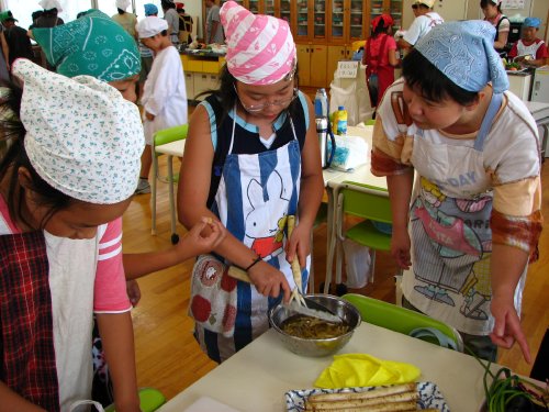 調理自体を行うのは子どもたちで、保護者のお母さんたちはアドバイスをする程度。
