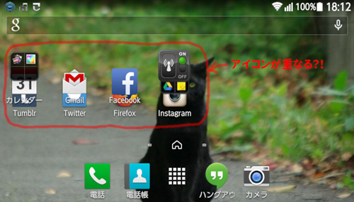 Nova Launcherを入れたところ、画面を横にしてもアイコン同士が重なることもなく、ちゃんと表示させることができました。