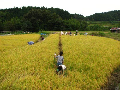 レギュラーメンバーだけでなく地元の親子参加もあり、仰木地区の生産者の方たちの協力を得ながら、和やかな雰囲気の中で毎年もち米作りなどをされています[ref]それ以外にも今年は、だだちゃ豆、そば、タマネギ、にんにくを栽培[/ref][ref]一連の様子は「もち米プロジェクト」を参照[/ref]。