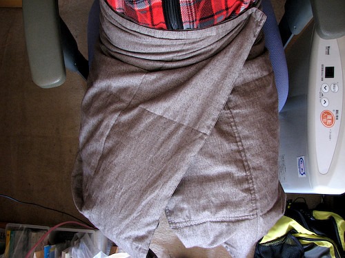 このひざ掛け、薄いんですがダウンが入っていて見かけによらず、あったかいんだから~♪