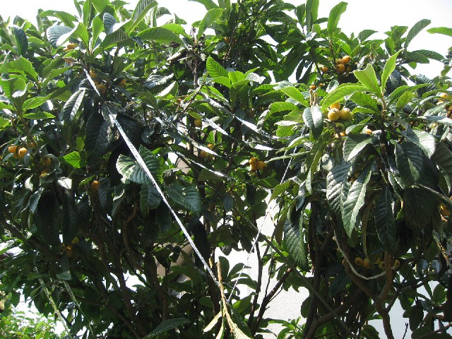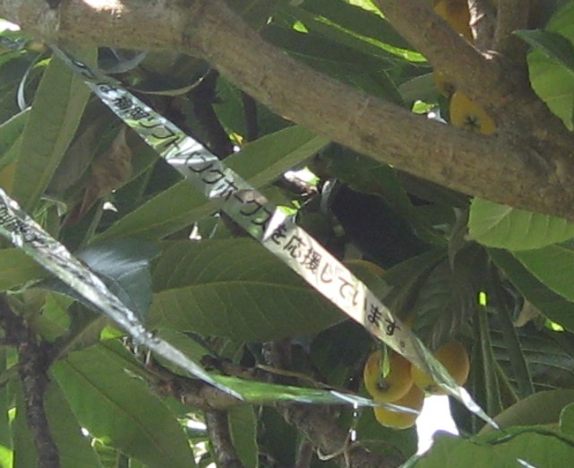 写真はテープを枇杷の木にかけた全体像です。