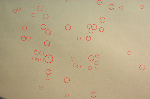 実際に目一杯絞って撮影してみると、以下の写真のようにセンサー上のゴミがはっきり写り込んでしまいます(◯赤マルで囲んだのがゴミだと思われる)。