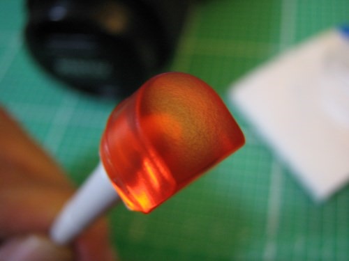 クリーニングスティックの先端には、粘着性のある半透明なオレンジ色の特殊ウレタンゴムが装着されています。