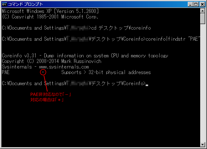チェックする方法については、LES BAUXのブログさんの「【準備編】CPUがPAE対応かどうか調べるには」に詳しく書かれています。