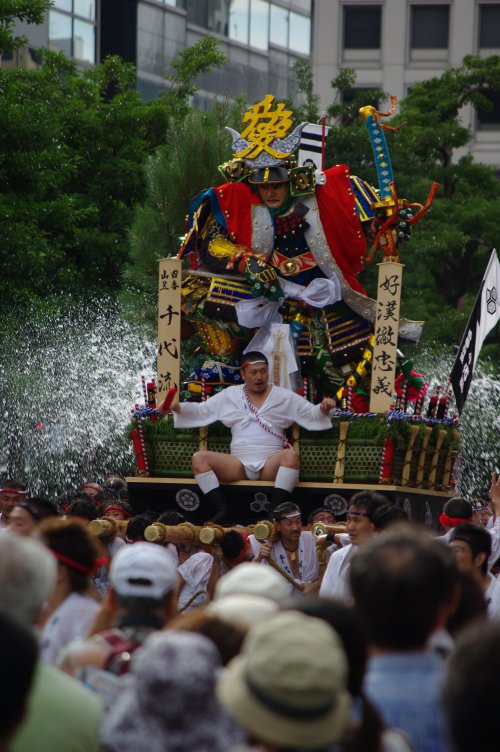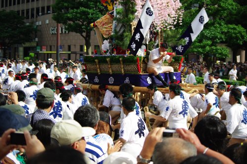 ひと山ひと山見ていると、アッというまに見物客と舁き手衆の波に飲み込まれ、気が付けば締め込み姿のお尻を見ながら櫛田神社境内をぐるぐるループする羽目になり、すでに汗だく。