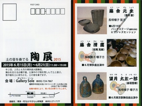 2015年6月15日(月)~21日(日)まで「土の音を奏でる陶展2015」がGallery Sole(ギャラリー・ソーレ)で開催されます。