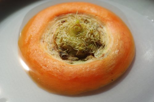 ほんと変化なし。 日なたに置いてみました。 ある筋からの情報によると、葉っぱは天ぷらにすると美味しいらしいので、最終目標は「ニンジンの葉っぱ天ぷら」と定まりました。