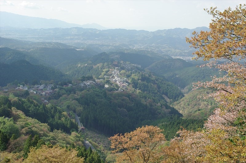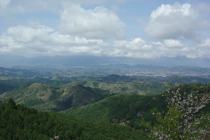 金峯神社の少し手前に、吉野を見下ろす眺望とともに、シロヤマザクラがまだがんばって咲いてくれていました。