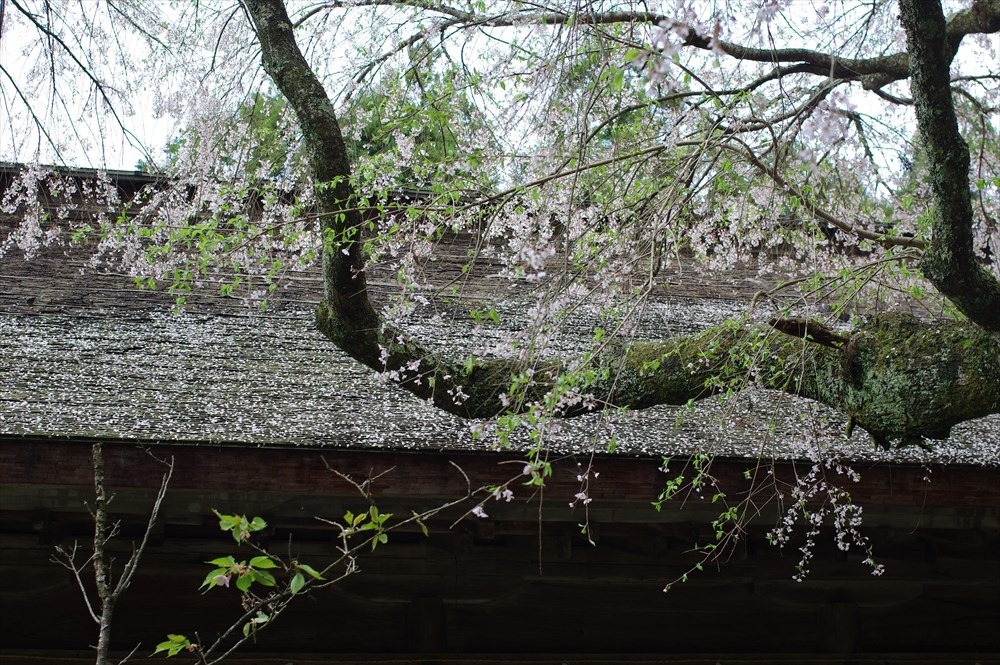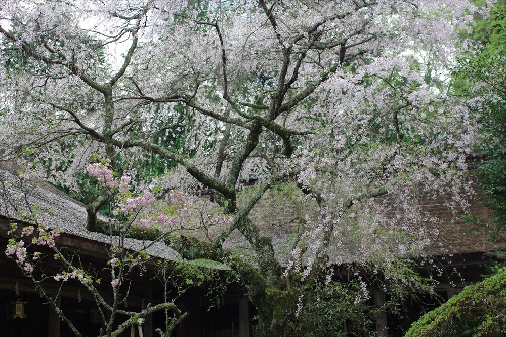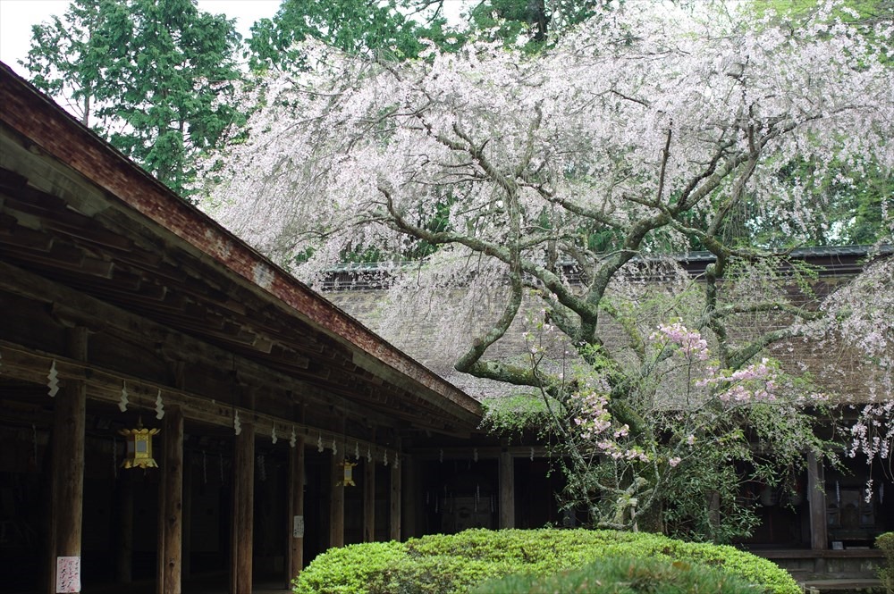 まるで中庭のような境内の中央奥には、実に見事な枝垂れ桜が静かに咲いていました。