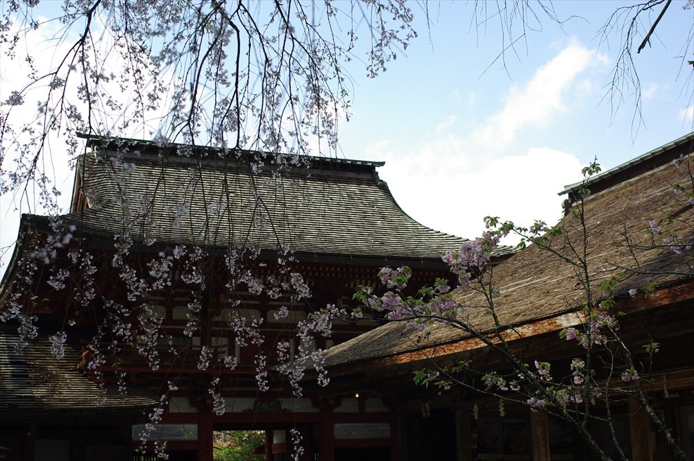 桜門を入ると、向かって右手から本殿、幣殿、拝殿が境内を取り囲むように配置されています。