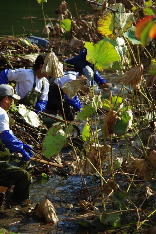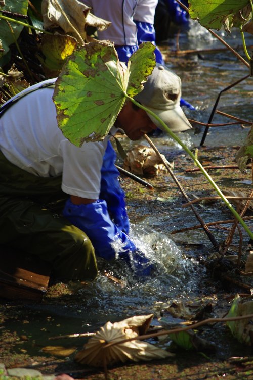 でも、いつの間にかきれいさっぱりなくなっていて、この作業風景を見るまでは忽然と消える蓮に何の疑問ももっていませんでした。