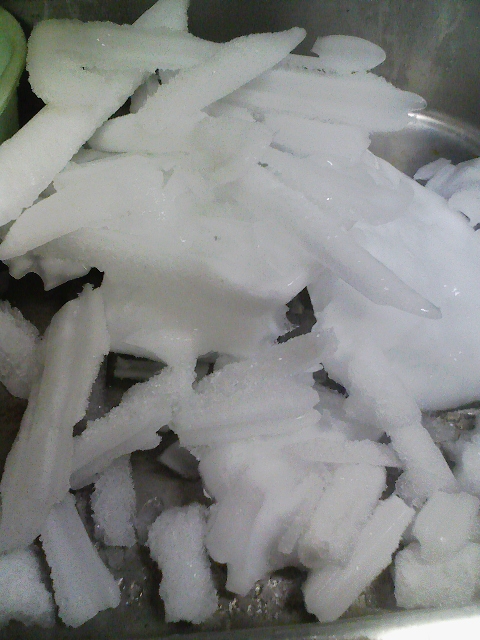 寒い台所で凍傷になるんじゃないかと思いながら、せっせと霜をすべて取り終えたら、なんと流しにあふれんばかりの大量の霜。