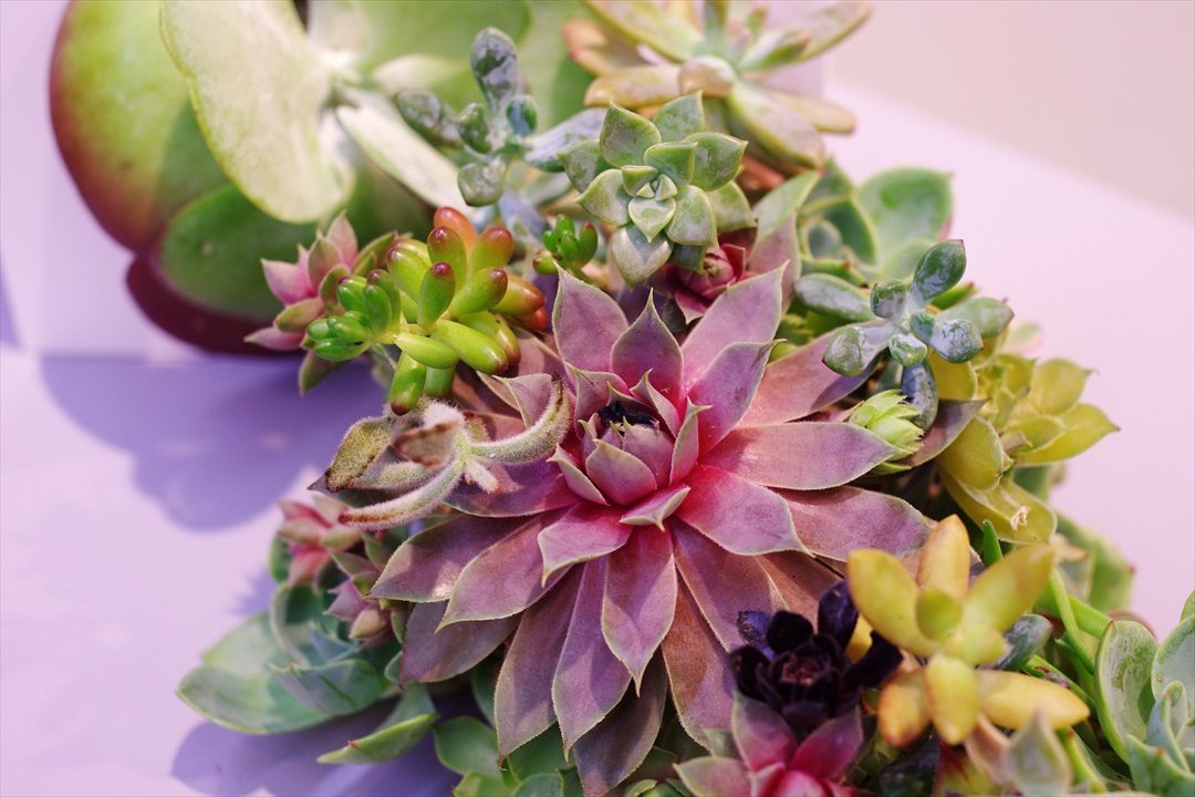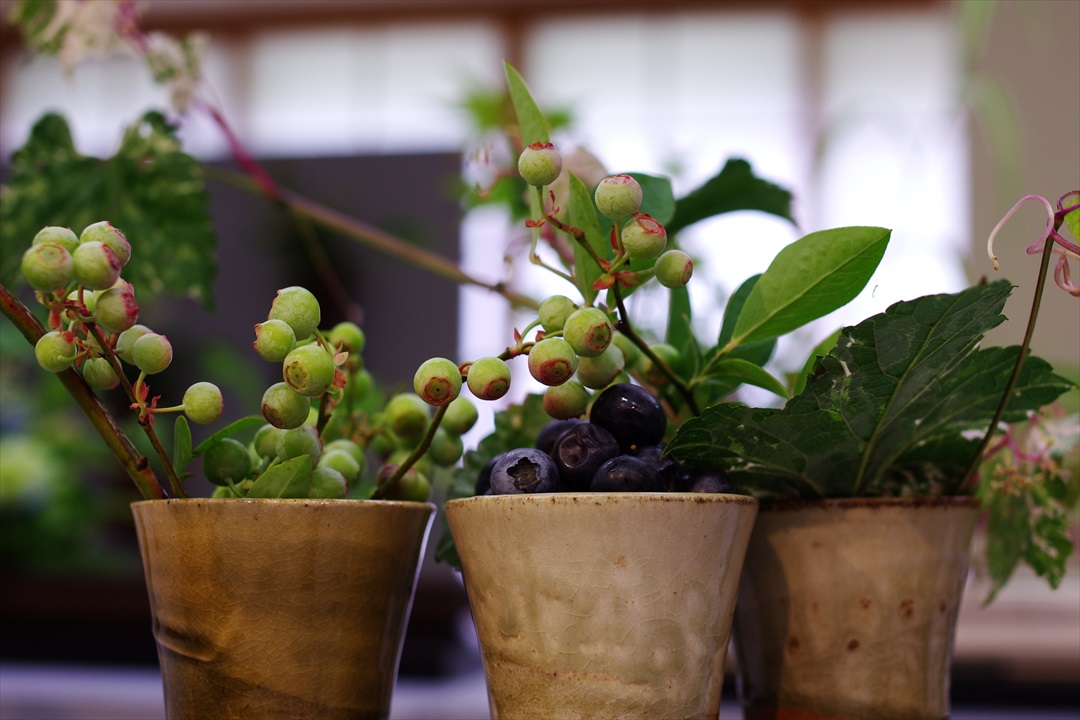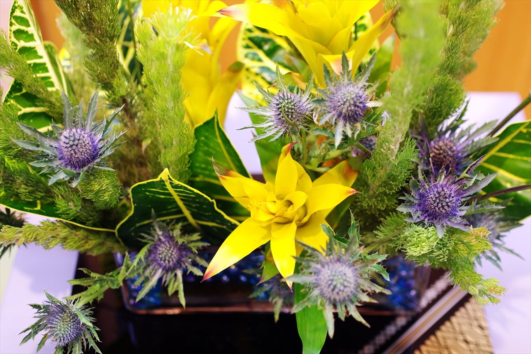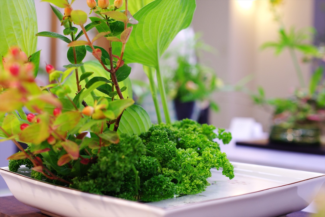 また、多肉植物やブルーベーリー、パセリなどユニークな花材を使った作品もありました。