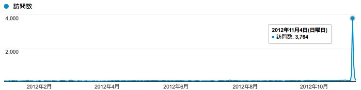 2012年元旦から11月2日までの平均訪問数が40人程度なので、突然1日に4桁にまで達すると、もう何事があったのか軽いパニックに陥りました。
