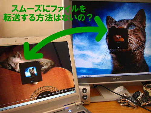 その際、PC間のファイル移動に、これまではフラッシュメモリに保存して移動したり、Gmailで添付送信したり、オンラインストレージでやり取りしたりと、何ともどんくさいやり方をしていました。