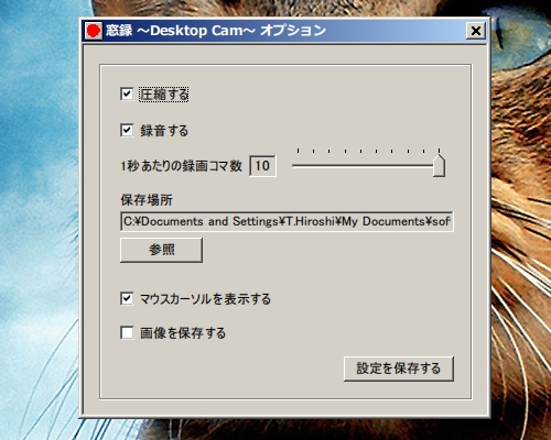 また、「SHIFT」を押しながら”DesktopCam.exe”をダブルクリックすると、オプション設定画面が開きます。