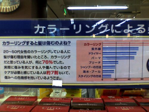 今回のヘアダメージについてのPOPはまさにそれで「はったり」的POPとでも言いましょうか。
